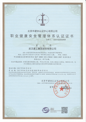 職業(yè)健康安全管理體系認證證書